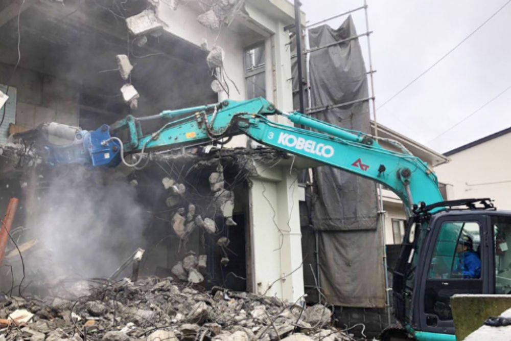 住んだまま、店舗営業したままでも良いように騒音も少なく、綺麗に解体工事を進めます。