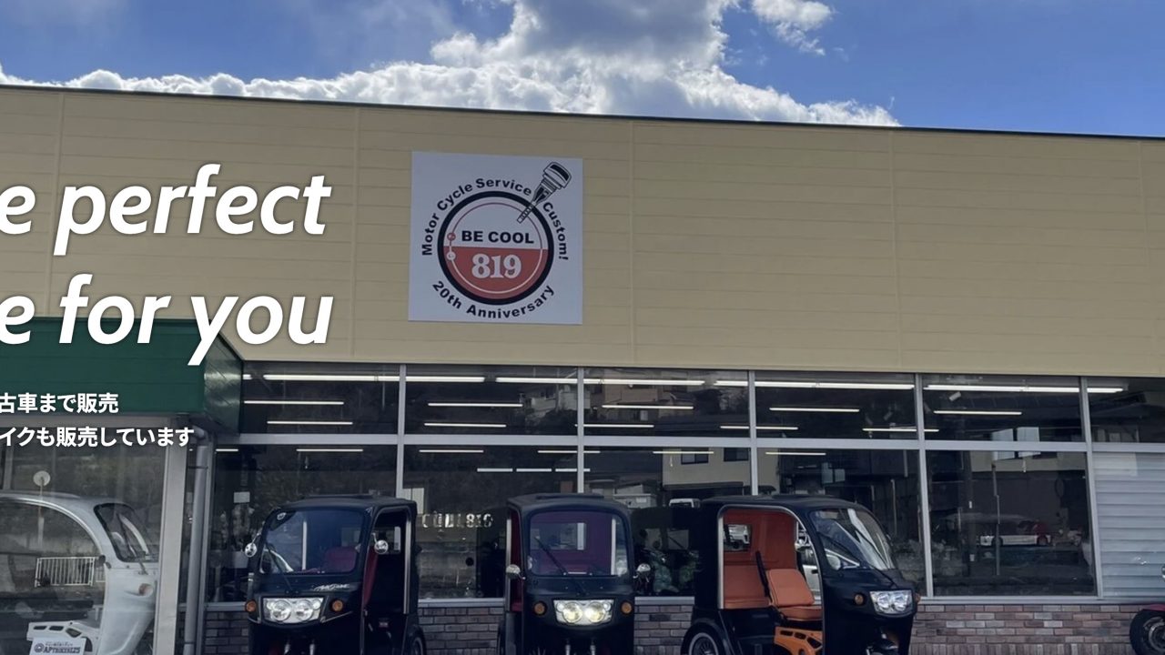 「BE COOL 819」は、中古バイク販売、修理、整備、車検など幅広いサービスを提供するバイクショップです。
